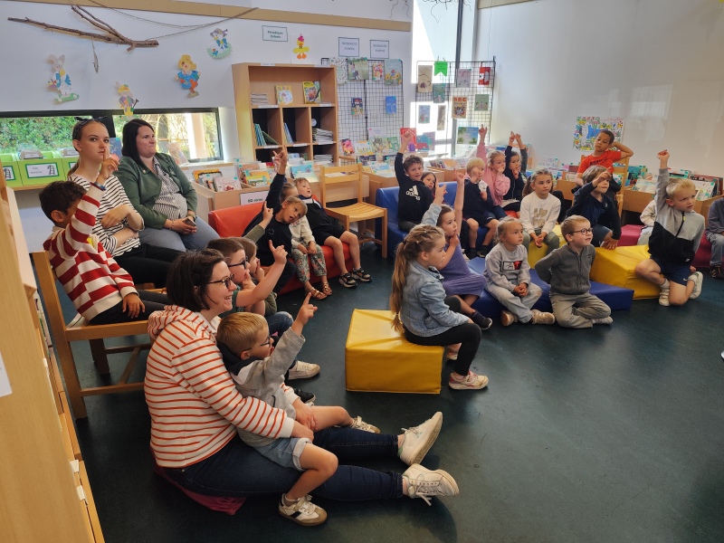 Nous avons eu la chance, chaque vendredi midi, de recevoir les élèves de CE2 dans notre classe. Après s’être bien entrainés, ils sont venus, par groupe de 2 ou 3, nous lire un album. On a adoré !!! MERCI LES GRANDS.