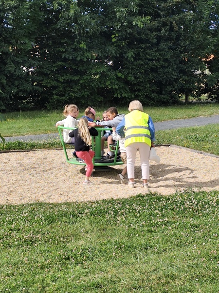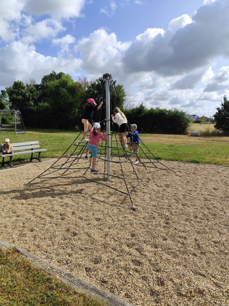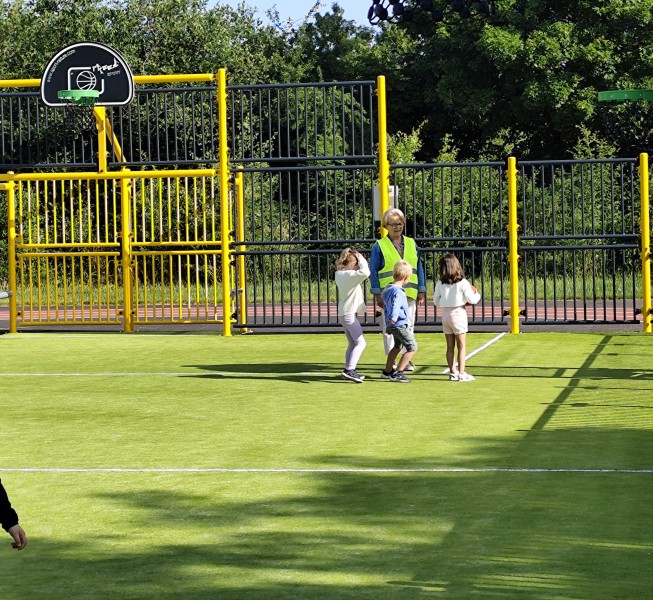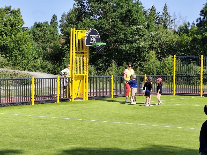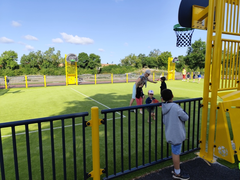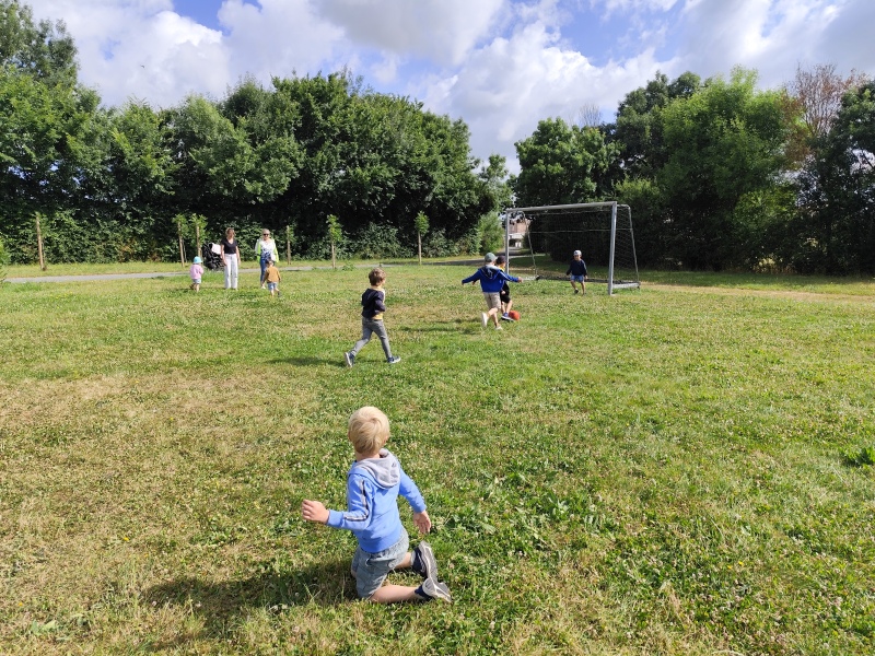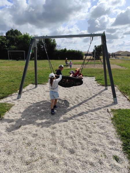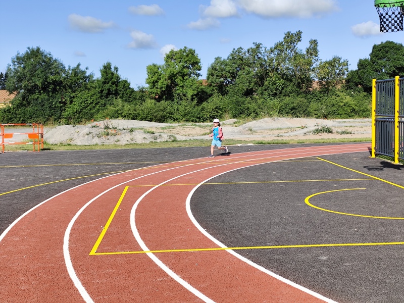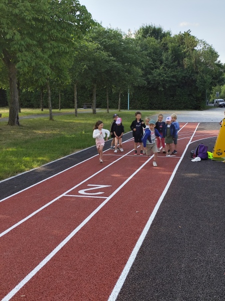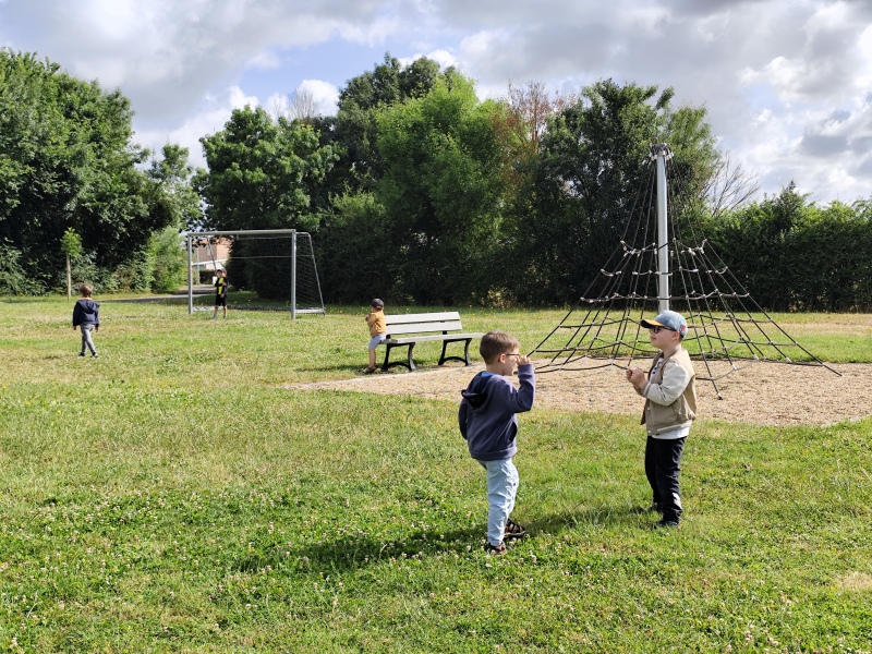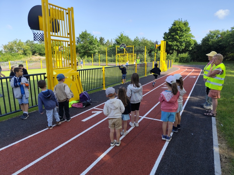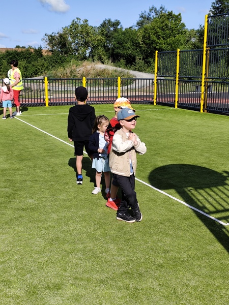 Après une petite marche, nous sommes allés au city faire du sport. Au programme, course en relai et tir au panier. Ensuite, nous sommes repartis direction le parc de jeu près du cimetière pour prendre le goûter et faire une petite récré.
