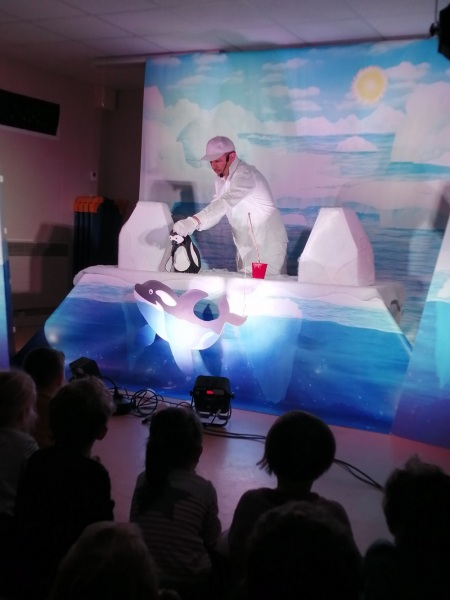 Ce matin, les élèves de PPS au CE1 ont eu la chance d’assister au spectacle « Pingouin » de la compagnie LéZ’arts vivants. Il s’agissait d’un spectacle vivant de marionnettes et de chansons.