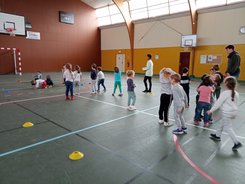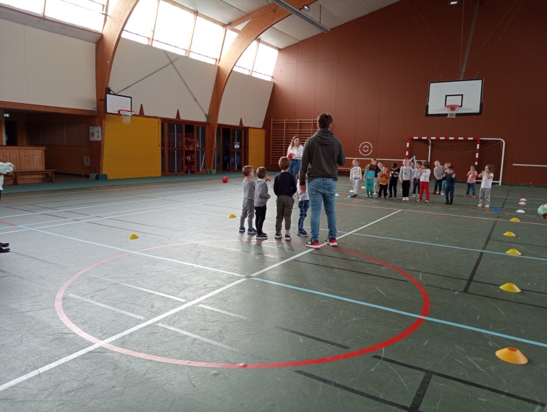 Pour la première fois ce jeudi 17/11/22, et pour tous les jeudis à venir jusqu’aux prochaines vacances, les enfants de MS accompagnent les GS à la salle de sports pour y découvrir les prémices d’un jeu collectif : le basket.