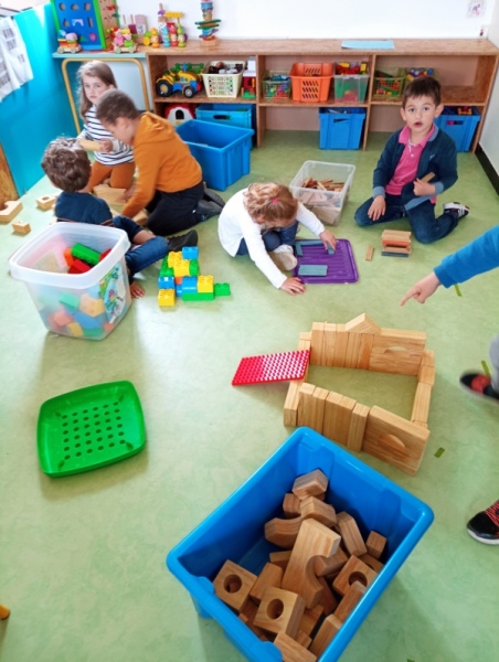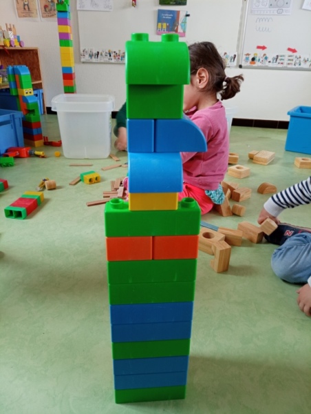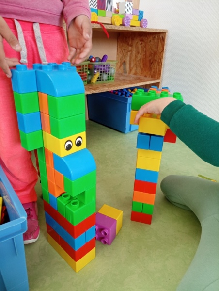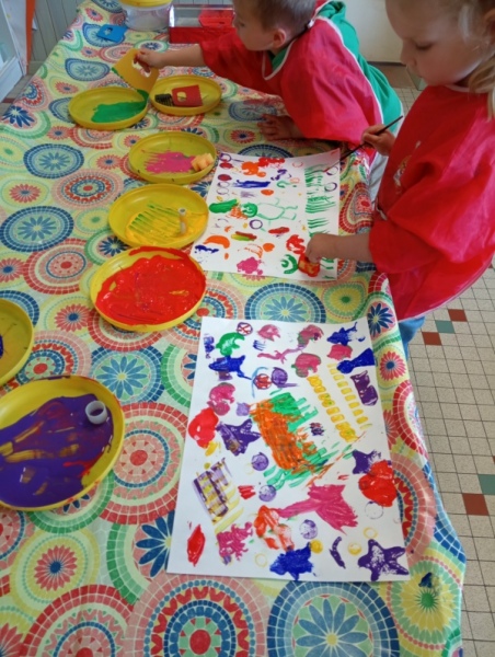 Toute la semaine passée, nos ateliers du matin nous proposaient de colorier, construire des tours ou des châteaux en Légos, en mousses, en kaplas… Nous avons aussi raconté des histoires, et fait de la peinture « comme on voulait », en manipulant plein d’outils :
