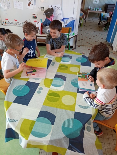 les grands de la classe de CE2-CM1 sont aussi venus nous raconter des histoires. Et jeudi la Bibliothèque nous a accueillis pour choisir de nouveaux livres !