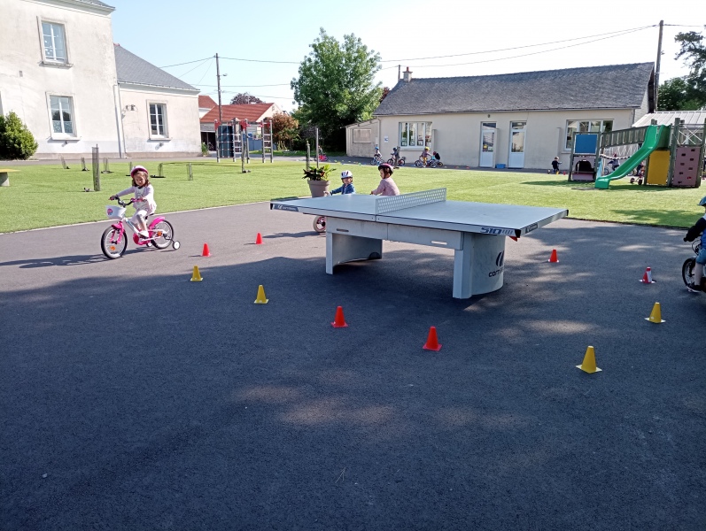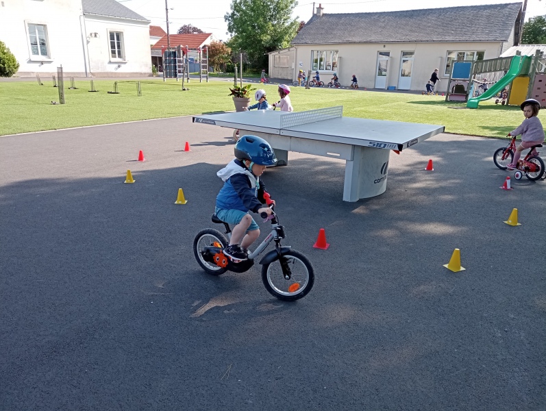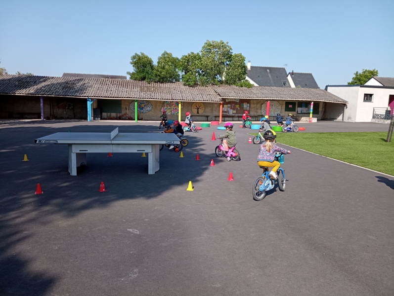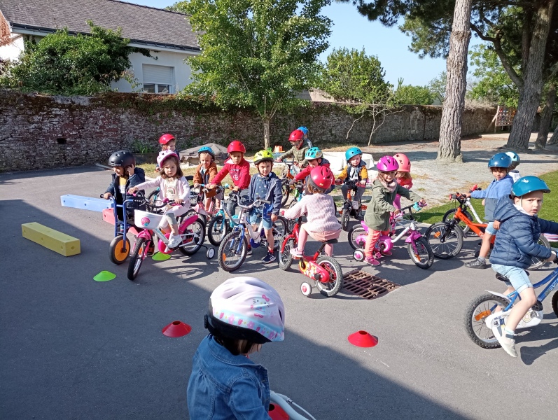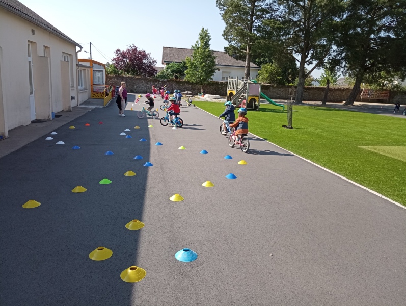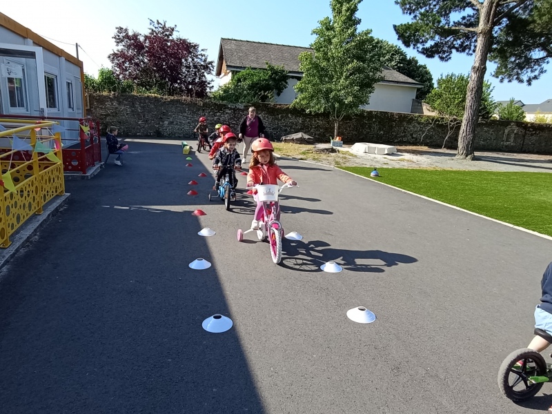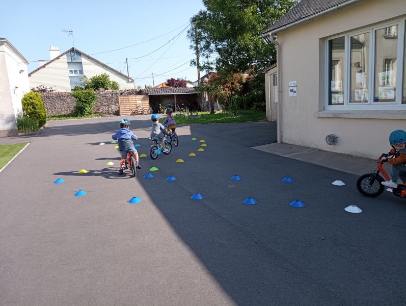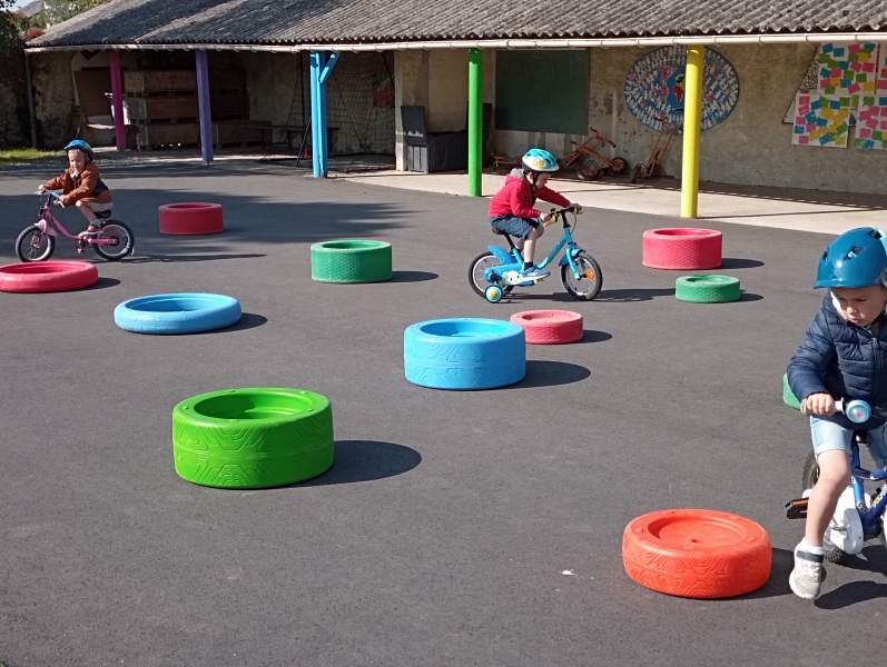 Vendredi notre « journée vélos »: faire des virages ou aller tout droit; tourner autour comme sur une piste ou passer entre les roues… On a adoré rouler, et on s’est très bien débrouillés !