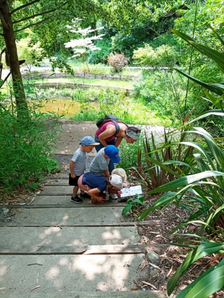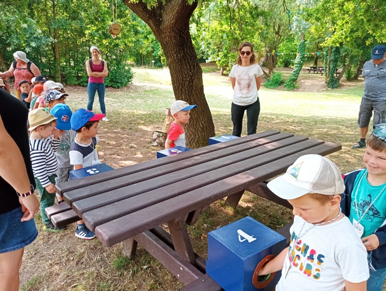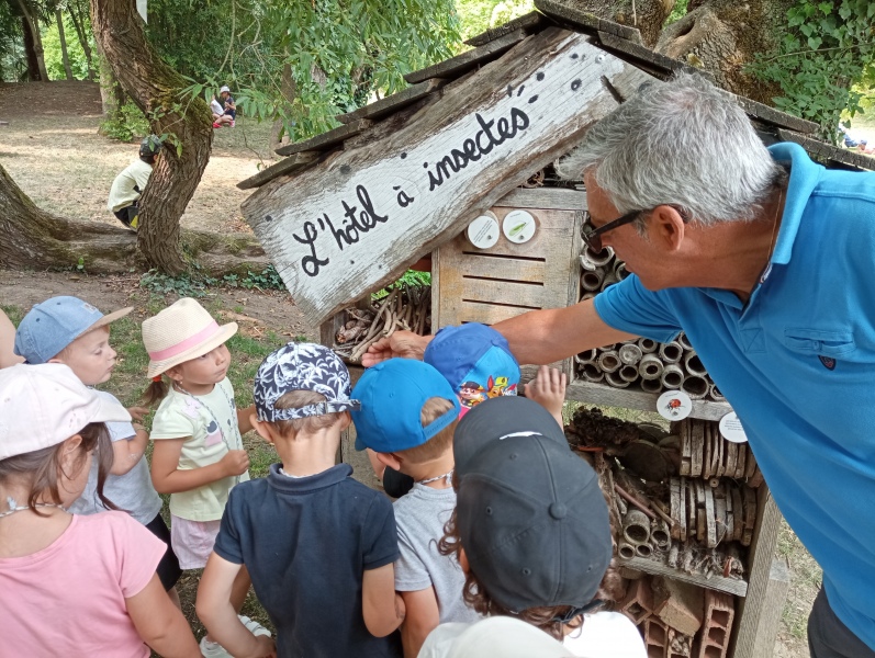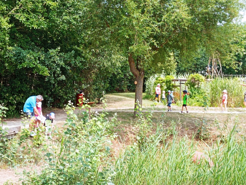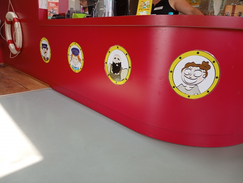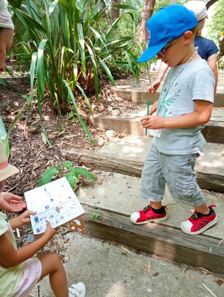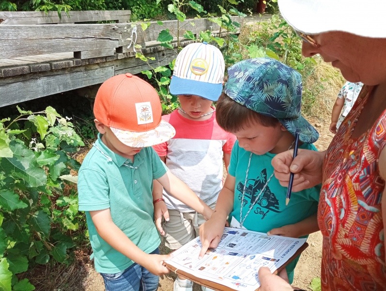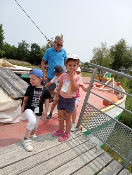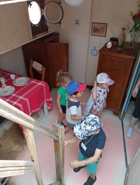 Après le pique-nique, nous avons retrouvé Aline qui nous a proposé une chasse au trésor : « Où est Denis de Marinier ? » Nous avions 5 personnages à retrouver dans tout le parc, avec leurs outils de travail (le marinier, la marinière, le charpentier de bateaux, la lavandière et le pêcheur). Nous avons donc arpenté le parc de long en large, exploré les cales du bateau… et sommes revenus sur nos pas … avant de repartir dans l’autre sens… !