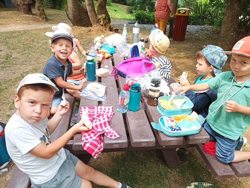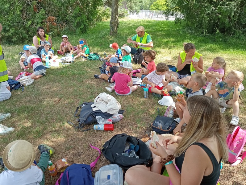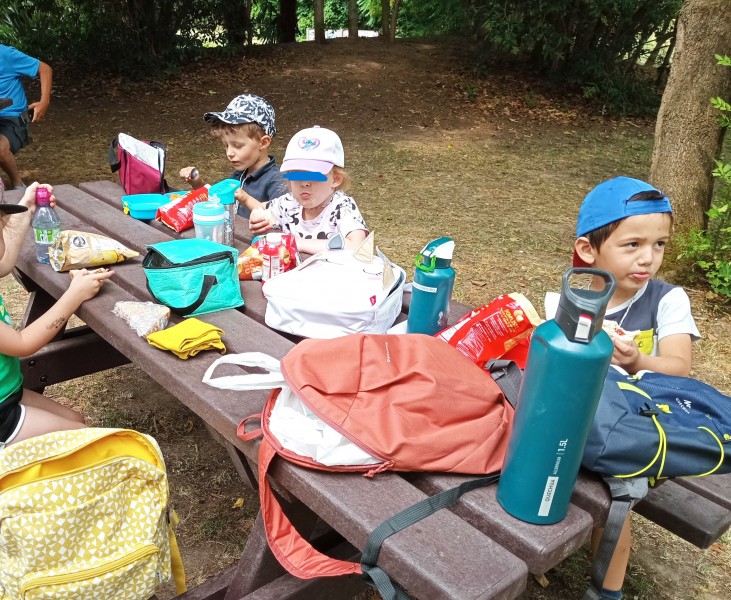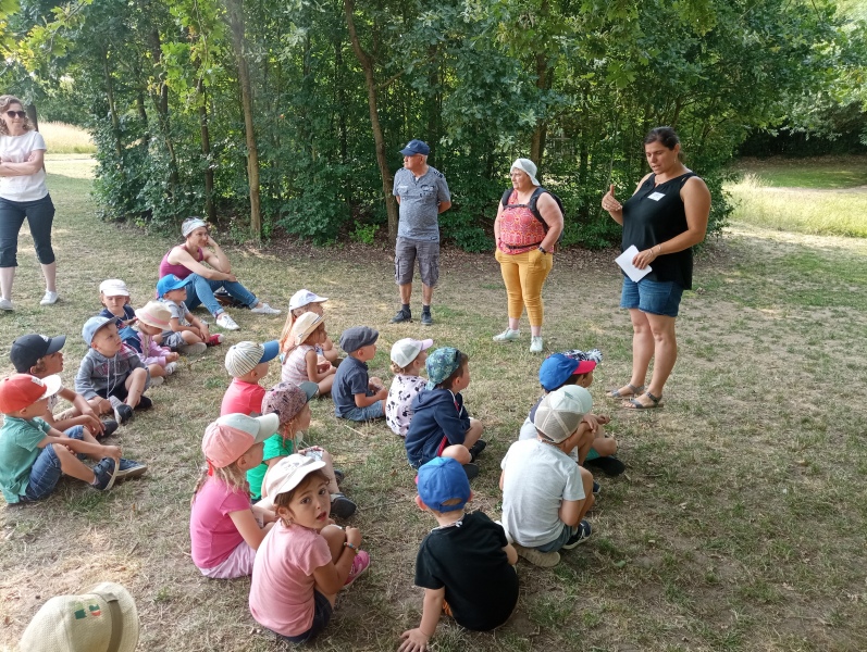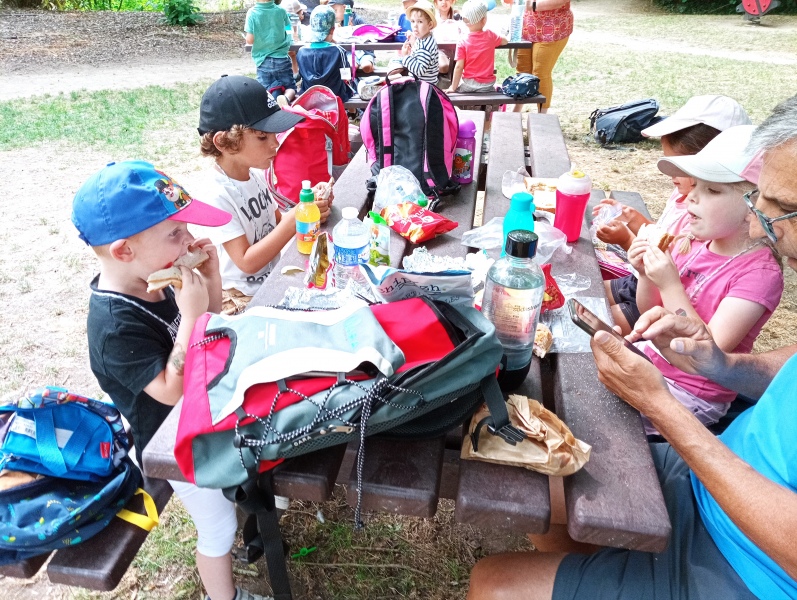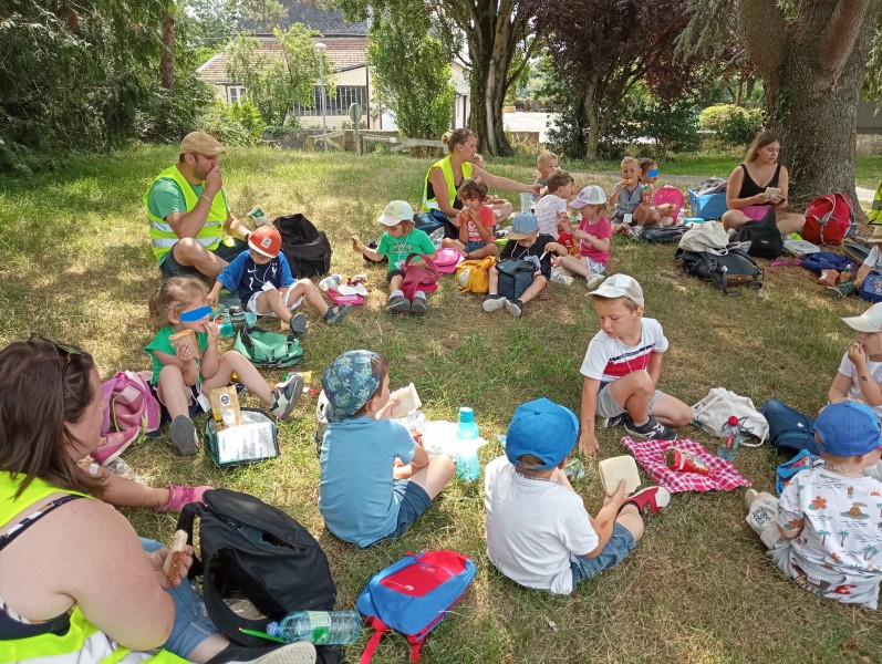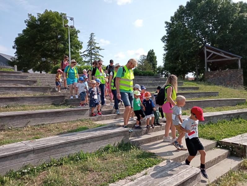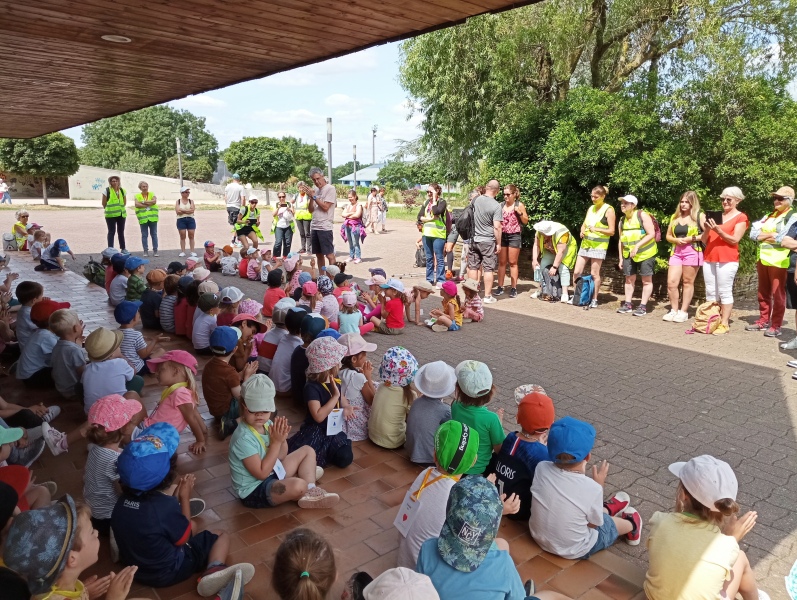 Puis, lundi 26, nous avons pris le car pour notre MATINEE RANDONNEE : direction les bords de Loire à Ancenis pour retrouver de nombreux autres enfants des écoles d’Ancenis et St Herblon. Sans oublier le pique-nique avant de rentrer nous reposer… Cette fois le temps était de la partie, nous nous sommes promenés à l’ombre des arbres, cherchant à apercevoir la Loire, écoutant les oiseaux, les grenouilles… Nous en avons profité pour ramasser quelques déchets ! Puis nous avons chanté tous ensemble « Toi et Moi », devant tous les parents accompagnateurs !