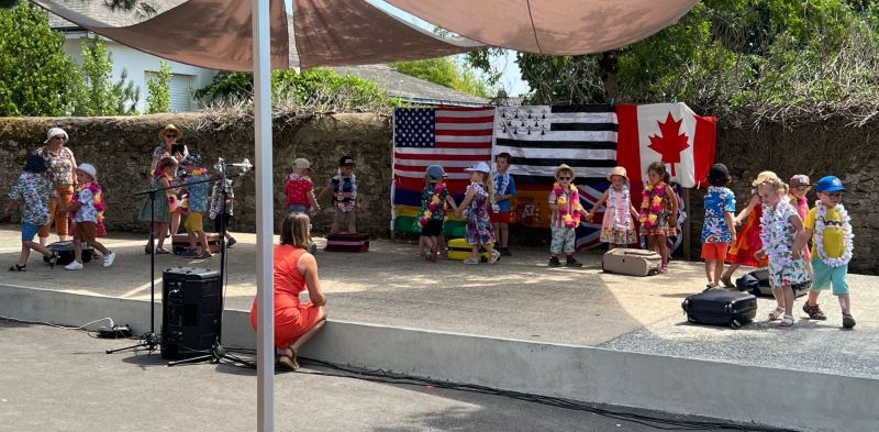 Nous avons commencé par la KERMESSE sur le thème « carnet de voyage ». Nous avons adoré le défilé déguisé, même s’il faisait un peu chaud… Et nous étions fiers de danser devant nos parents, grands-parents, amis… Nous avons parfaitement réussi notre présentation, nous étions contents de nous !