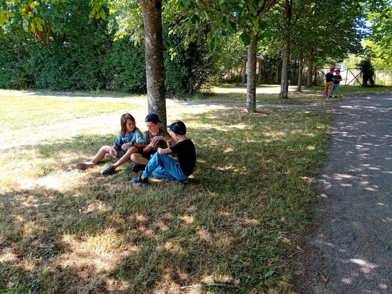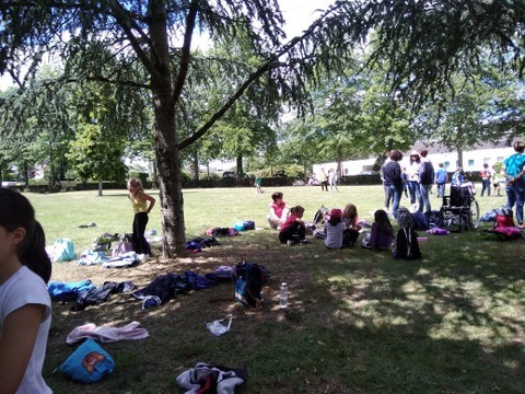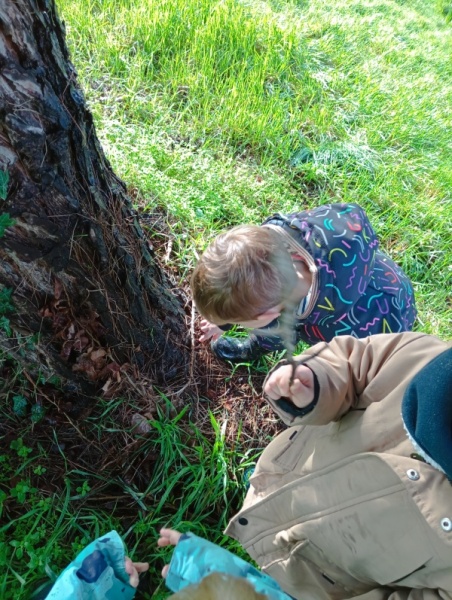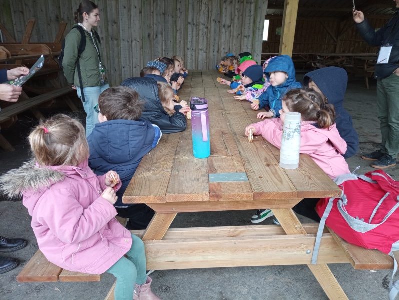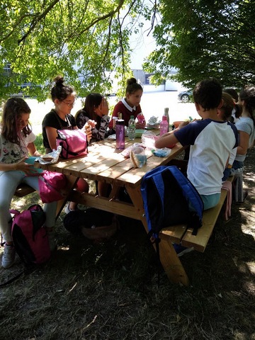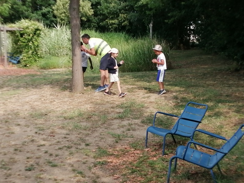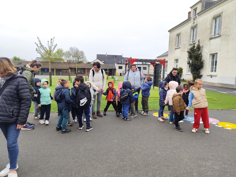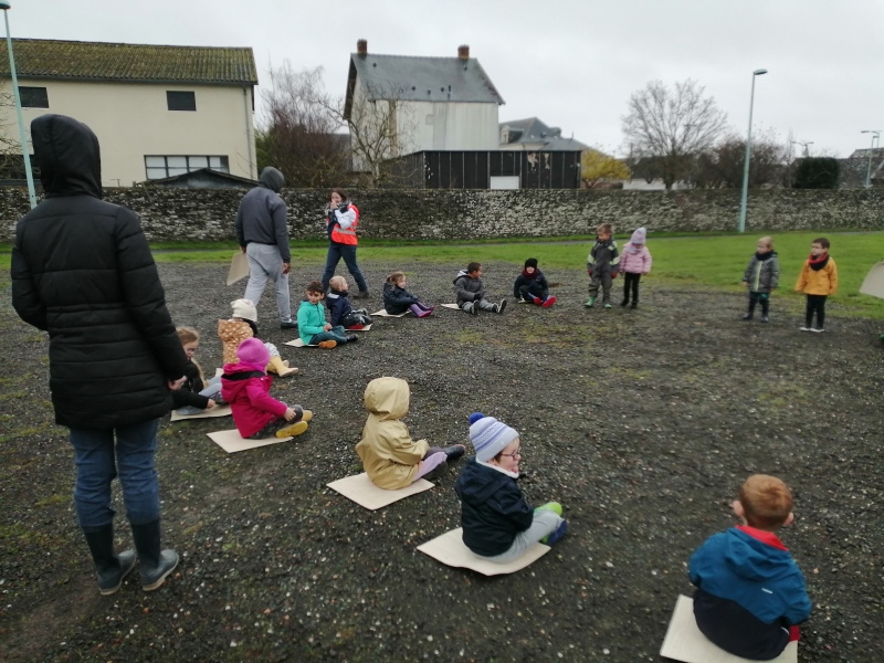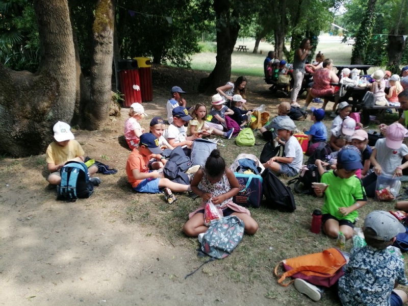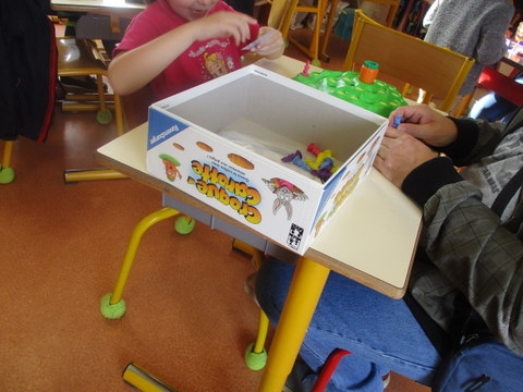 Après cet atelier, nous avons pique-niqué avec les élèves de PS-MS de Carine. L’après-midi, une fois bien « reboustés », nous avons participé à notre 2ème atelier (les GS et les CP avaient deux animations différentes). Pour les GS, il s’agissait d’un jeu intitulé « Où est Denis ? ». Le but était de retrouver des dessins cachés dans tout le parc. Pour les CP, c’était une chasse au trésor. Il fallait rechercher des indices codés pour former une phrase et trouver l’endroit où se cachait le trésor.