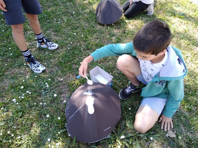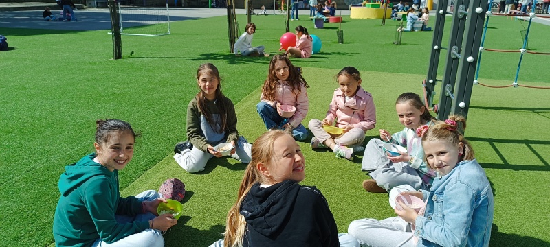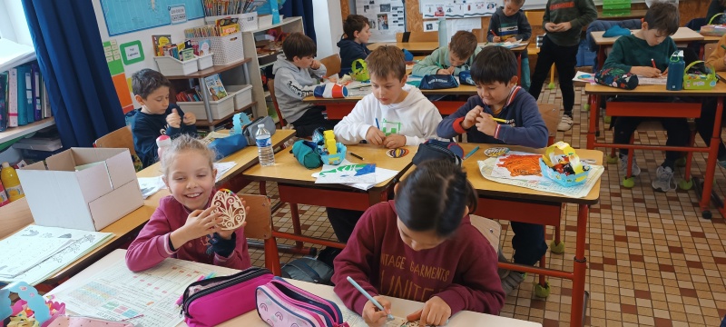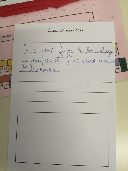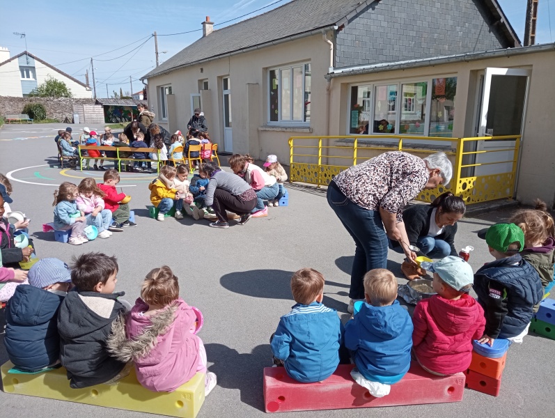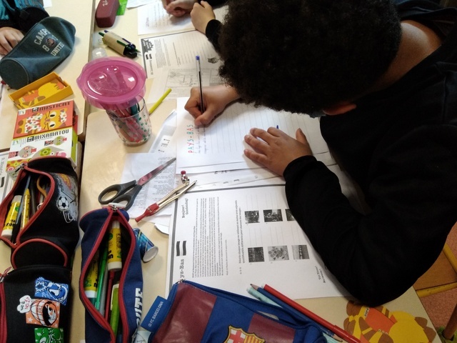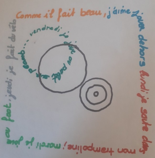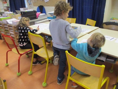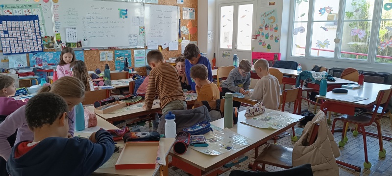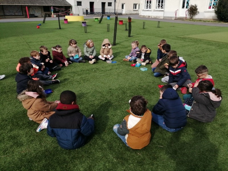 Après cet atelier, nous avons pique-niqué avec les élèves de PS-MS de Carine. L’après-midi, une fois bien « reboustés », nous avons participé à notre 2ème atelier (les GS et les CP avaient deux animations différentes). Pour les GS, il s’agissait d’un jeu intitulé « Où est Denis ? ». Le but était de retrouver des dessins cachés dans tout le parc. Pour les CP, c’était une chasse au trésor. Il fallait rechercher des indices codés pour former une phrase et trouver l’endroit où se cachait le trésor.
