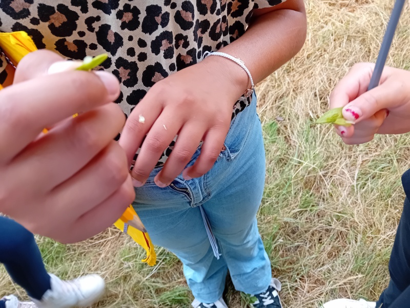 Mardi dernier, nous sommes allés à Montjean sur le site de Cap Loire. Nous avons participé à un atelier intitulé « Les petites bêtes » avec Axel. Nous avons commencé par chercher des photos de petites bêtes qui étaient cachées dans le parc et ensuite, nous en avons capturées pour les observés. Nous avons même eu la chance de pouvoir prendre des phasmes dans nos mains.