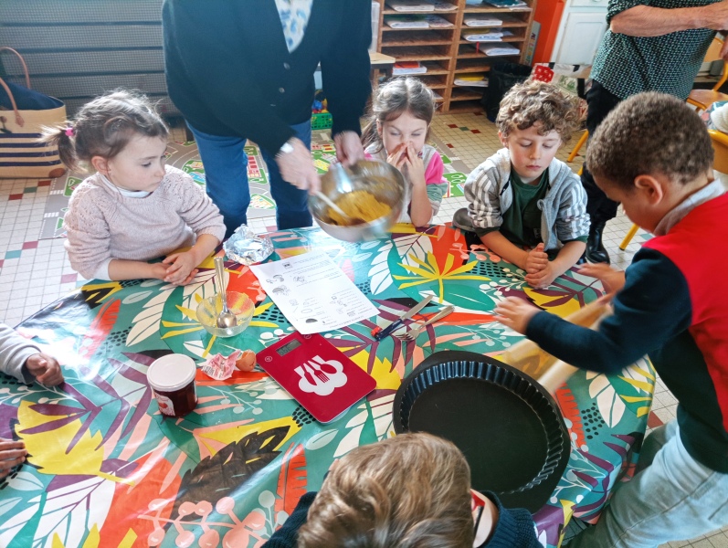 La seconde consiste à recruter des parents ou grands parents pour venir nous prêter mains forte lors de l’atelier cuisine (un grand merci pour leur participation !).