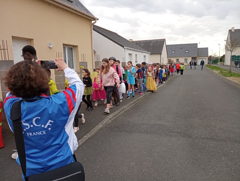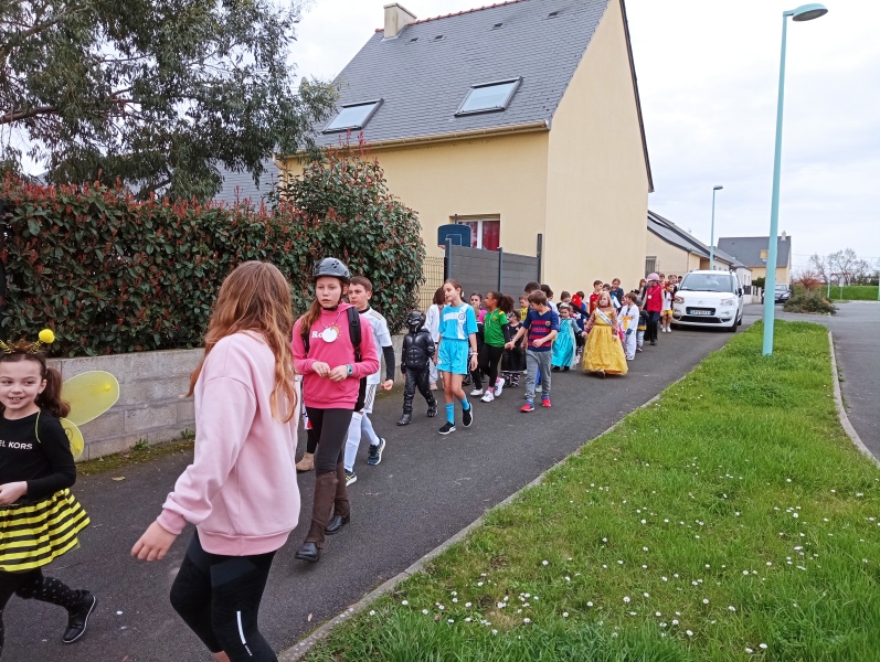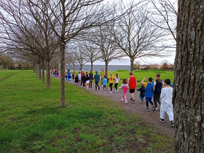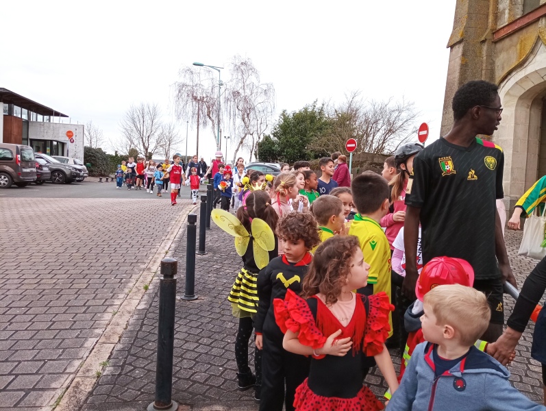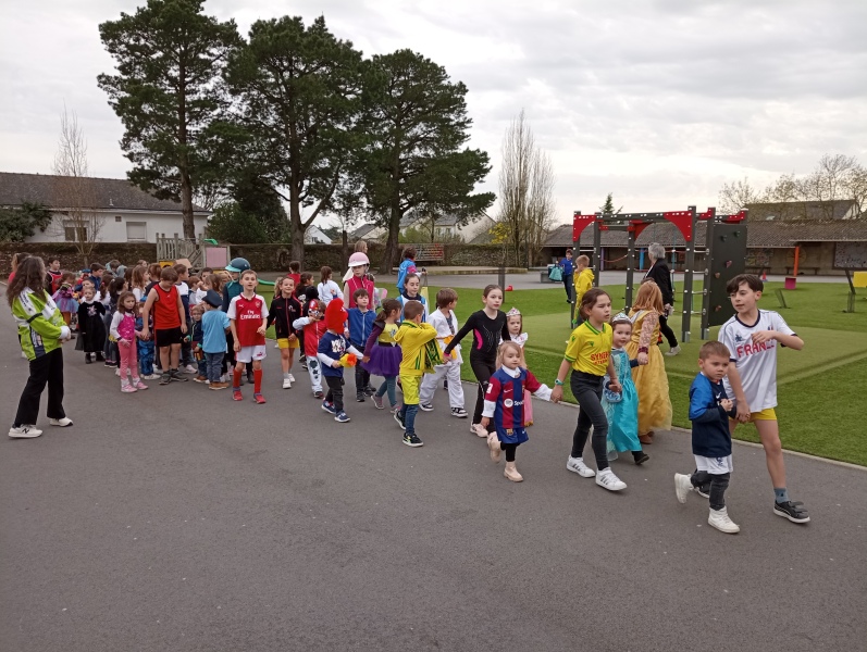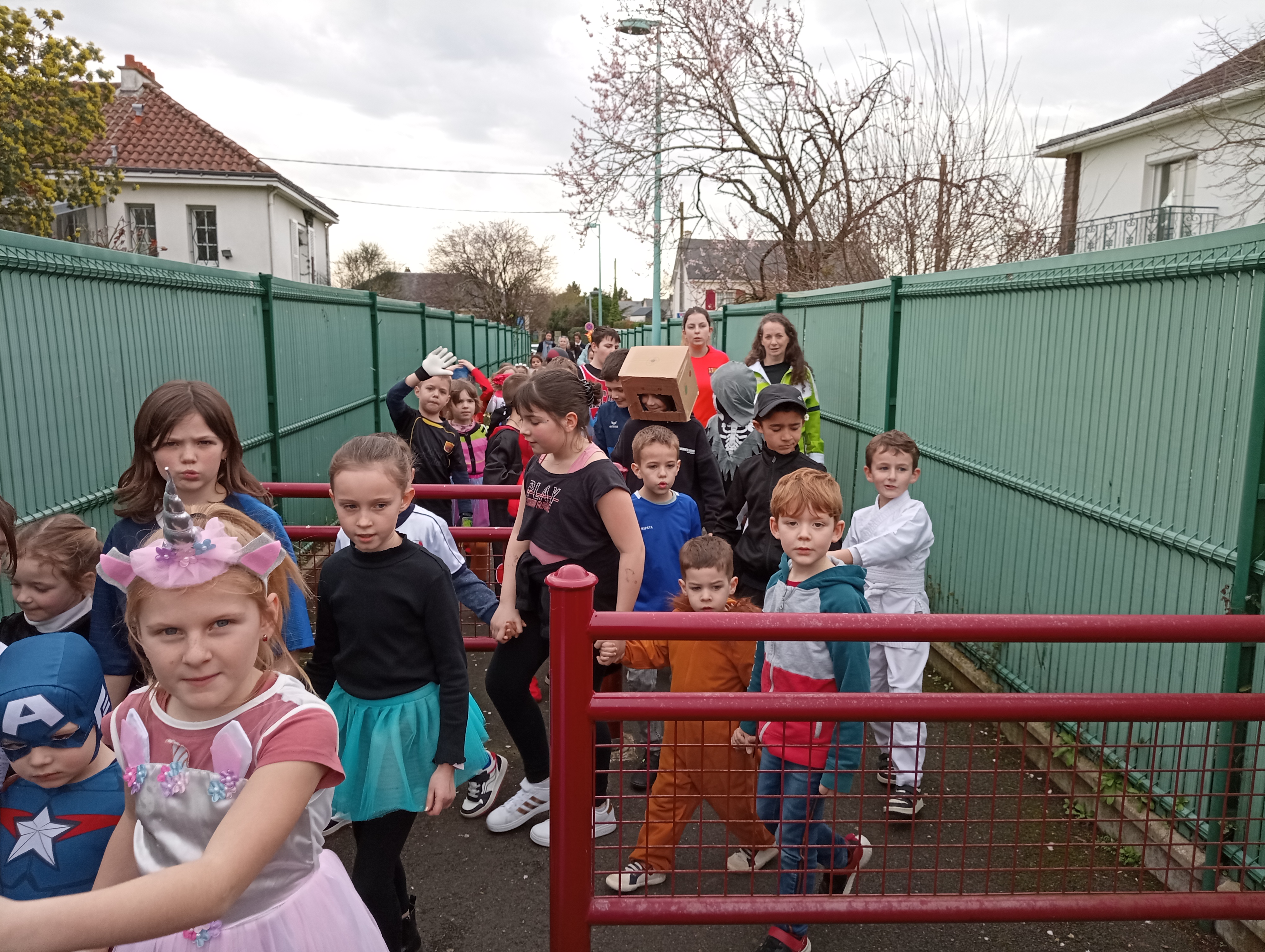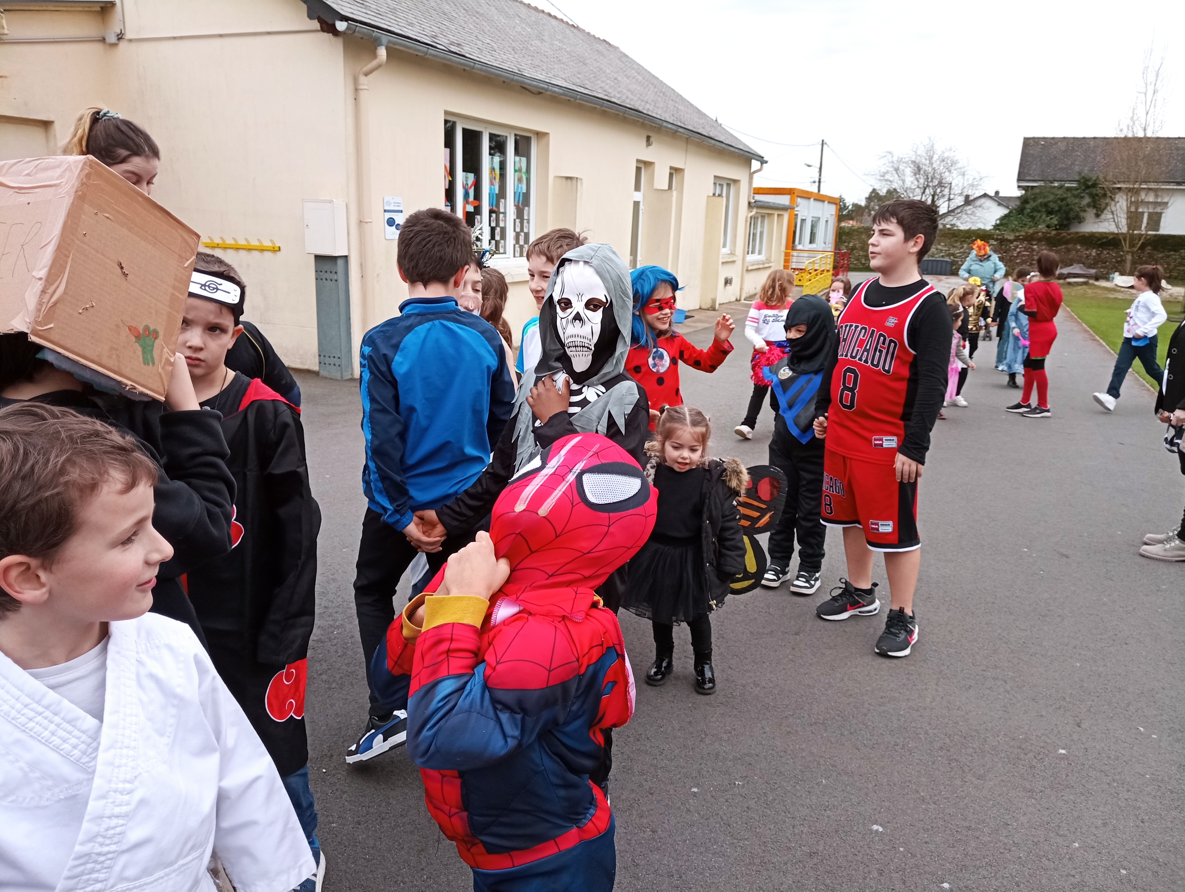 Ce jeudi, nous nous sommes retrouvés sur la cour vers 15h, tous costumés, pour partager un goûter offert par l’APEL, puis nous sommes allés jouer et montrer nos déguisements aux autres enfants.
