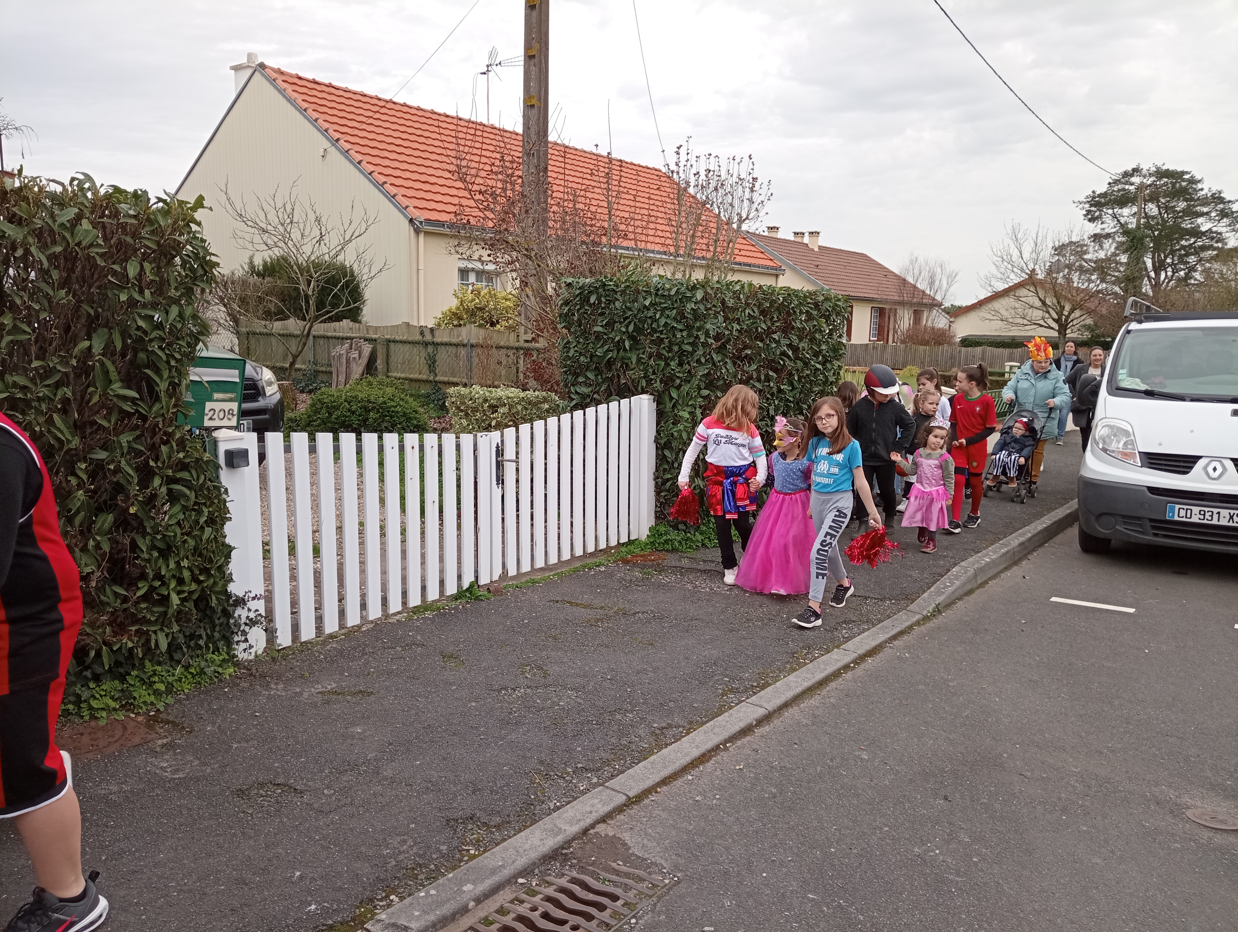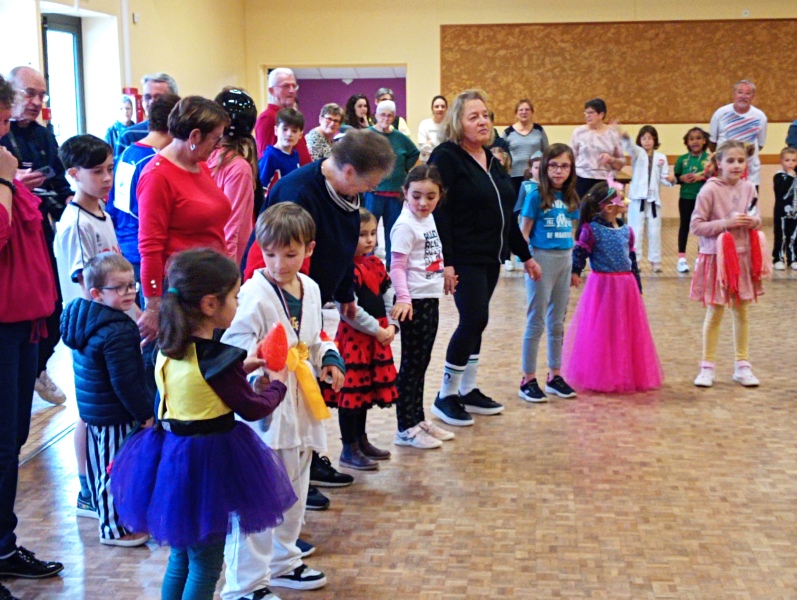 Sur l’air de « La flamme Olympique », nous nous sommes retrouvés, parrains, marraines et filleuls pour former le défilé jusqu’à la salle de la cour où nous attendaient les personnes du Club Bon Accueil.