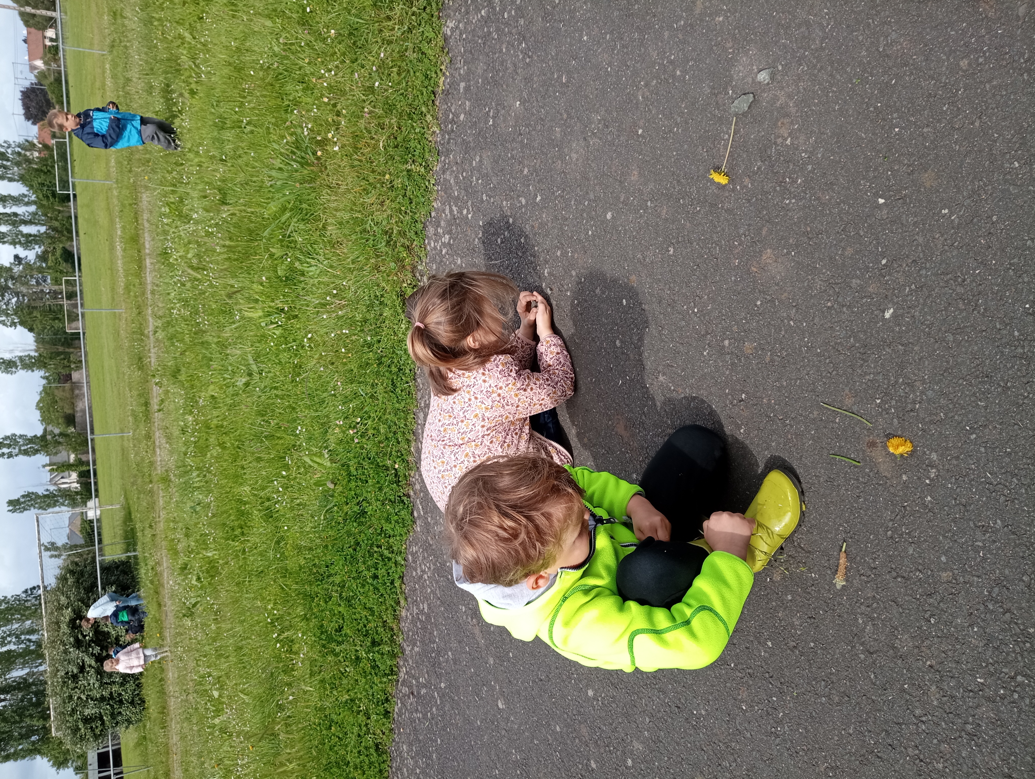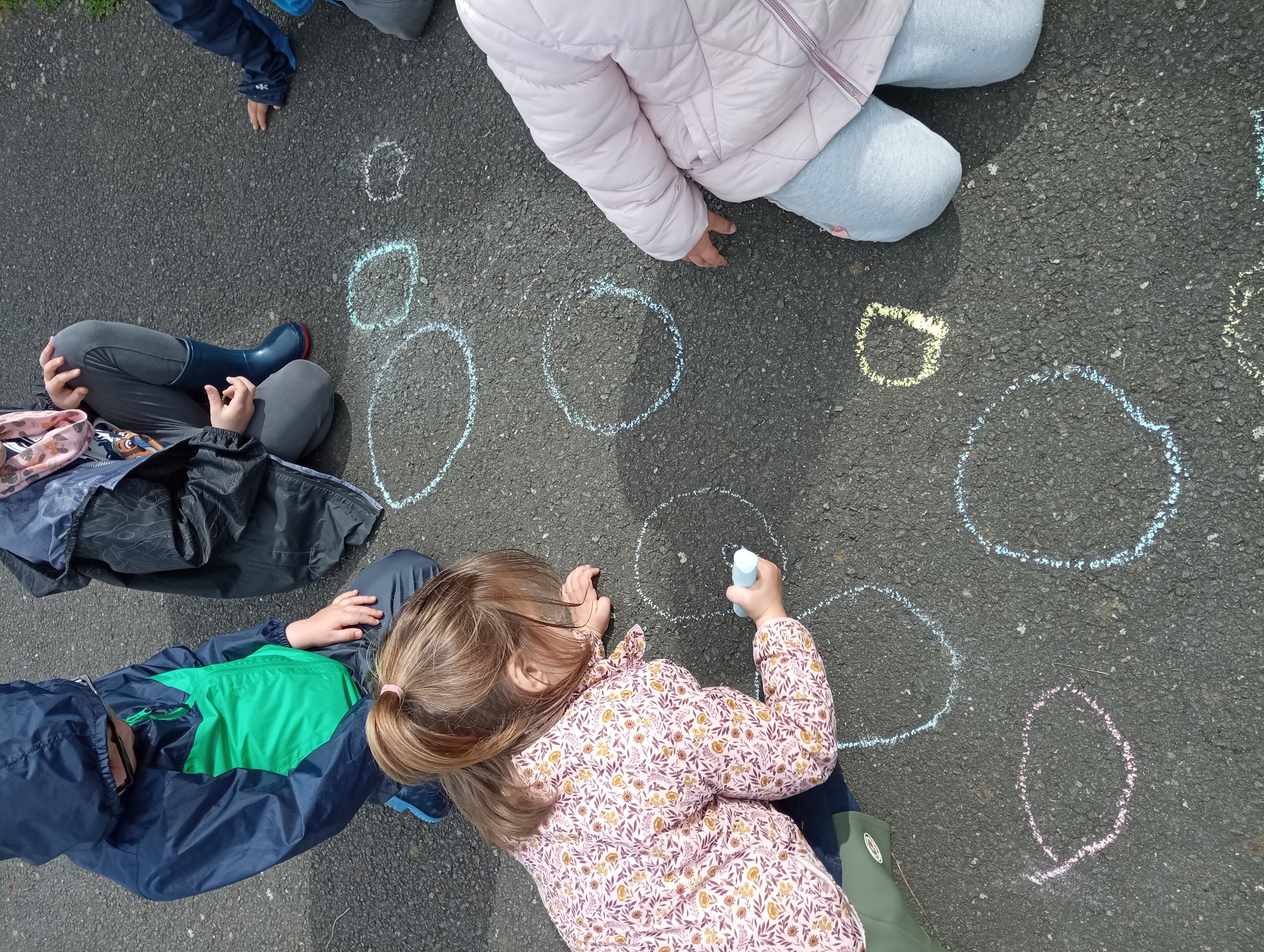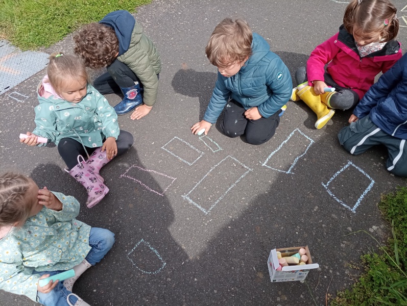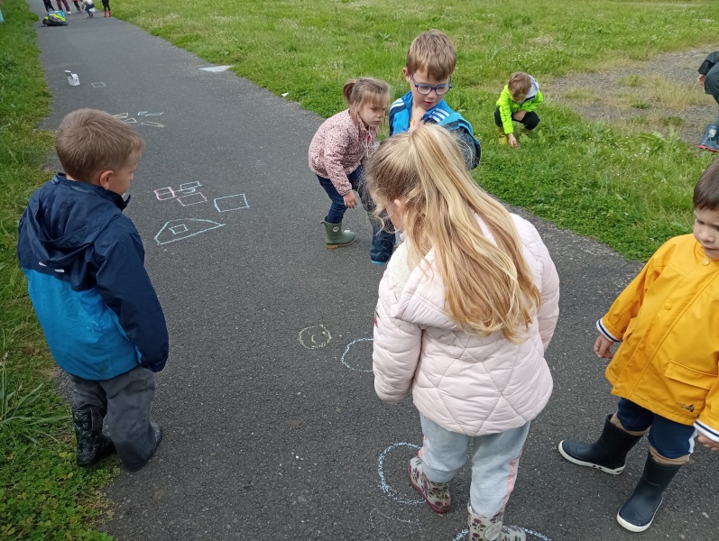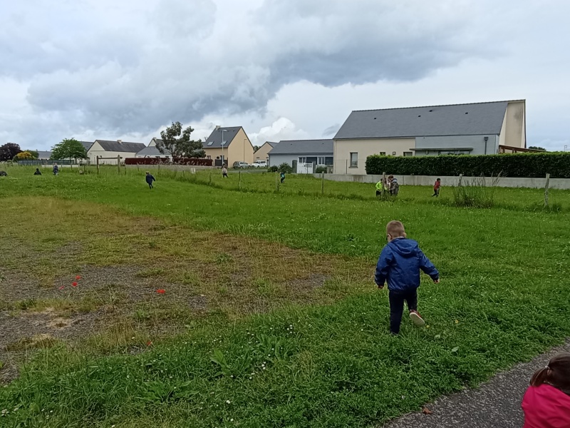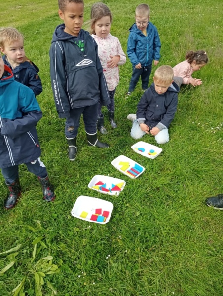 Pour ces moments d’apprentissages en dehors de l’école, nous nous rendons près du terrain de foot, rappelons l’espace de jeu autorisé, prenons le temps de chanter, de présenter les ateliers guidés par les parents ou grands parents accompagnateurs (que nous remercions vivement, car sans eux nous ne pourrions pas sortir de l’école !!)