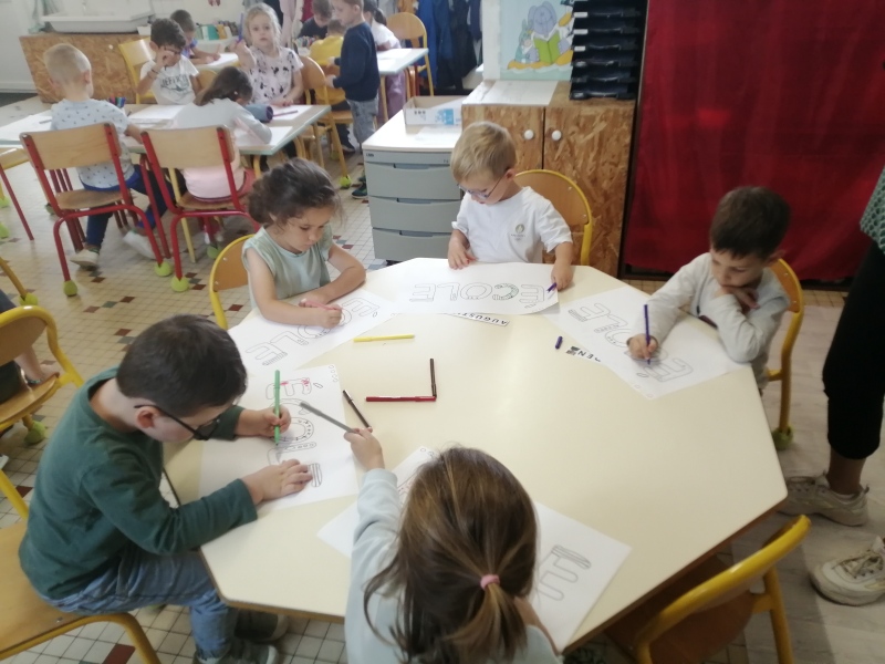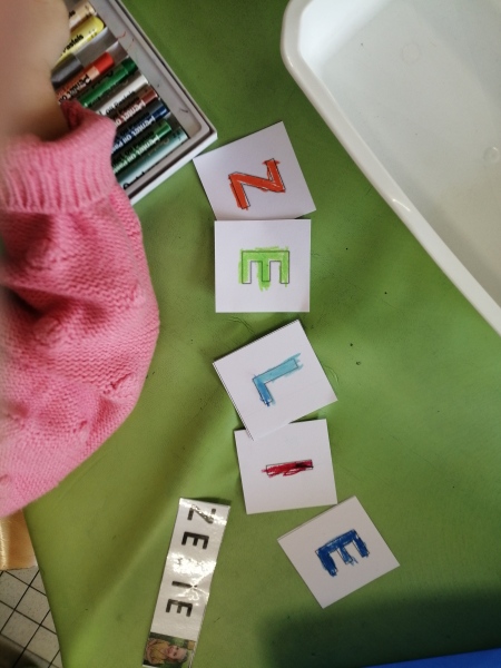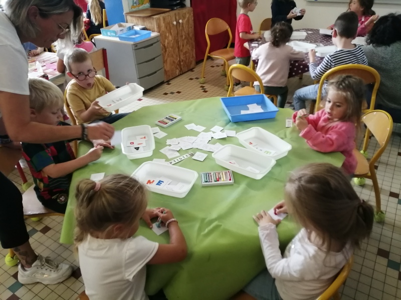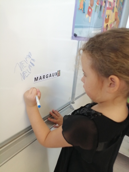 - travail sur le prénom (MS) et la notion de mots/de lettres (GS)
