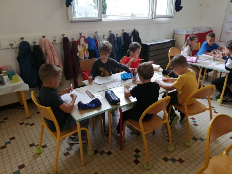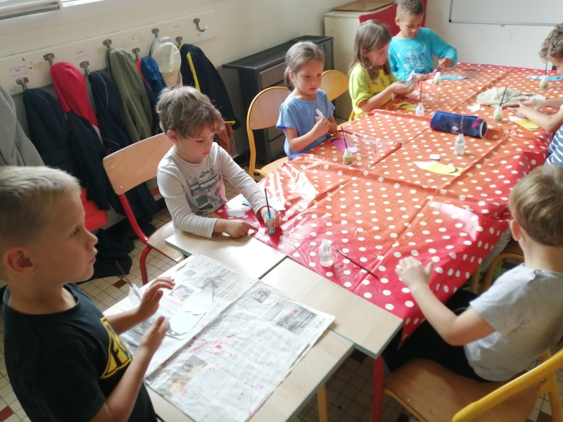 - bricolage sur le thème de l’école (création de « crayons rigolos » pour décorer la classe)