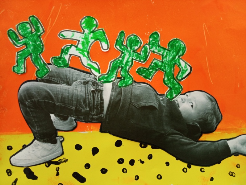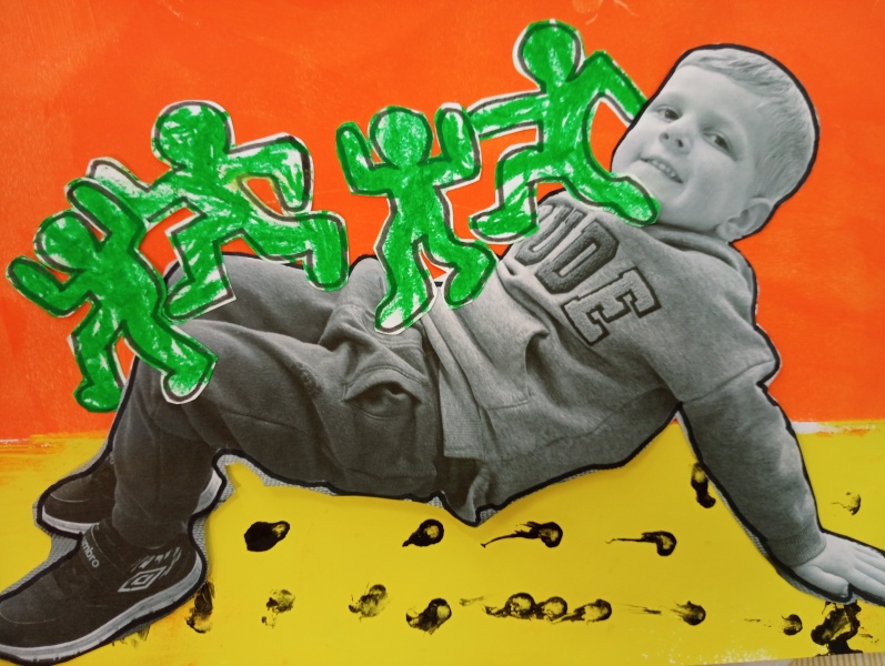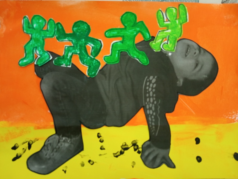Depuis le début de la seconde période, les enfants s’intéressent à la peinture à travers les œuvres de Keith Haring par une création « à la manière de KEITH HARING » (Art For All People)