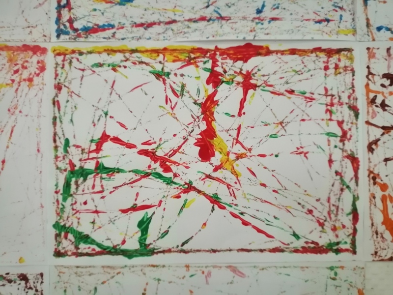 JACKSON POLLOCK : nous avons laissé des traces avec de la peinture et des billes.