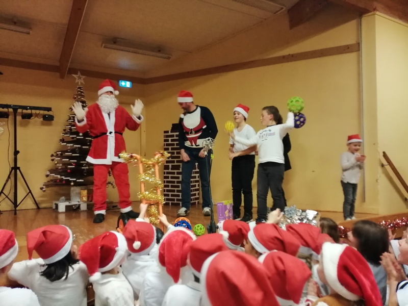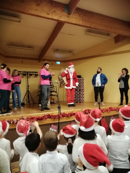 Après la célèbre flashmob qui clôture notre spectacle, le Père-Noël est arrivé et a apporté de nouveaux jeux pour s’amuser pendant les récréations : trottinette, balles de différentes tailles, ballons sauteurs, … Et bien sûr, chaque élève a reçu un petit sac de gourmandises.