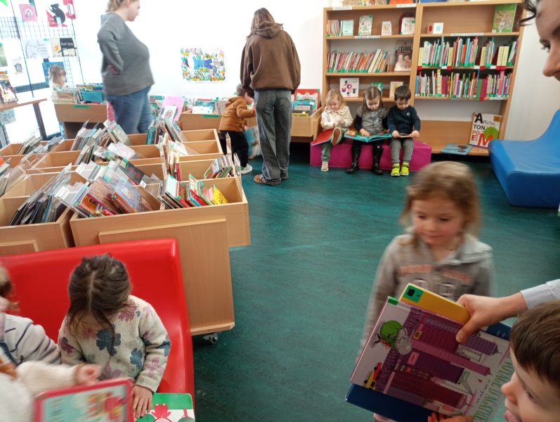 Le lundi 27, nous avons pris le chemin de la bibliothèque afin de rapporter les livres empruntés en décembre, et en choisir de nouveaux. Merci aux parents accompagnateurs qui nous ont lu des histoires sur place.