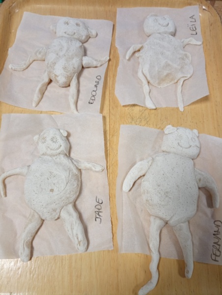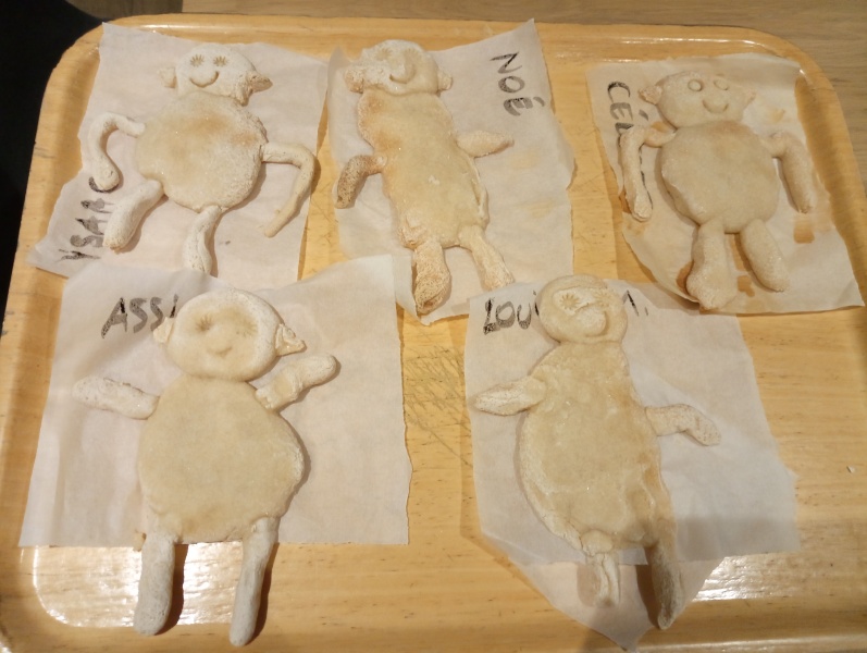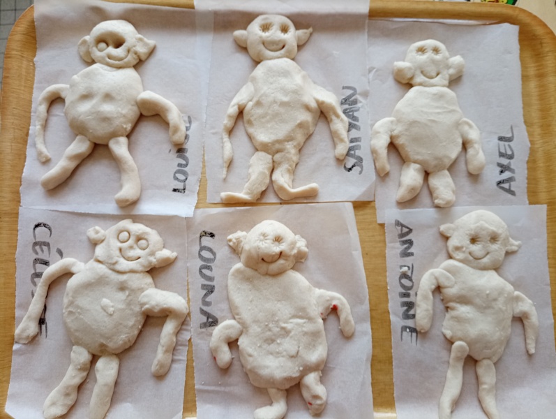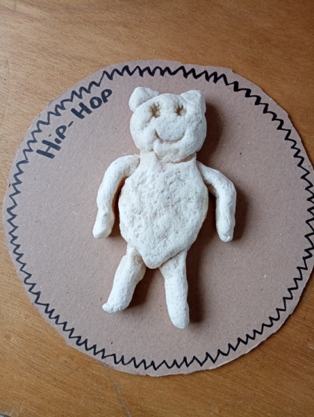 A notre tour nous nous sommes lancés, comme lui, avec de la pâte à sel. Après avoir mélangé le sel, la farine et l’eau, nous avons malaxé la pâte, puis modelée, pour sculpter… Un Hip-Hop !