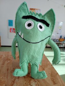 Et puis, le lundi de la deuxième semaine, un nouvel élève est arrivé en classe : il est tout petit, tout vert, avec de grandes dents… et un grand sourire. C’est notre petit monstre ! Il prend part aux activités de la classe, aux temps de regroupements…