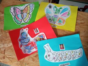 Dans la classe nous avons aussi distingué les PS des MS en prenant l’image de la chenille qui se transforme en papillon en grandissant : les papillons étaient donc déjà à l’école toute l’année passée :