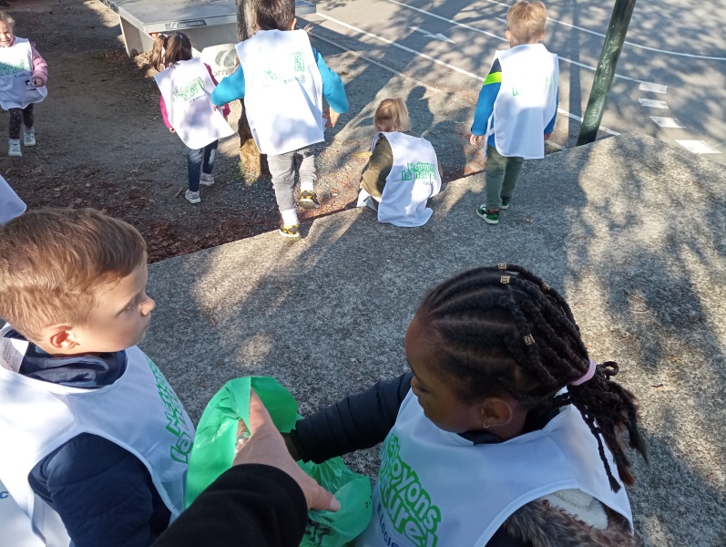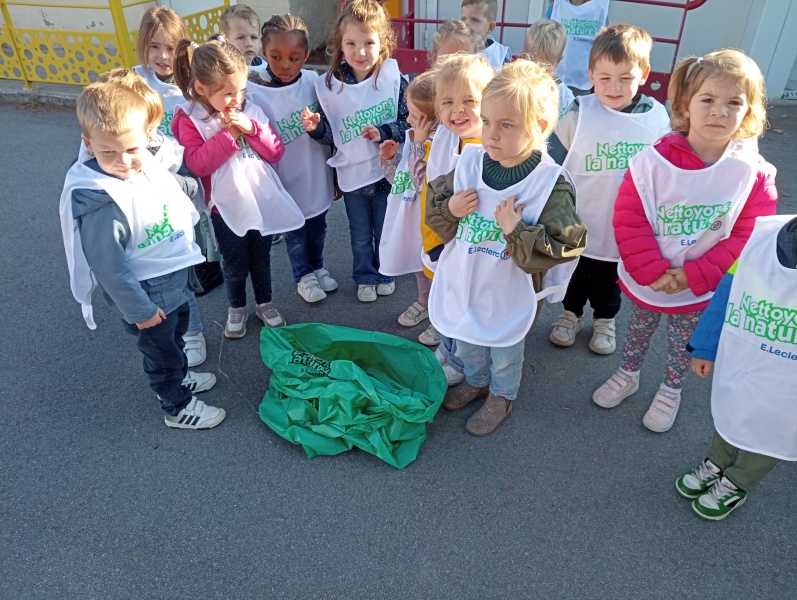 Le lundi 29 septembre, comme tous les enfants de la classe, nous avons participé à l’action « Nettoyons la Nature ». Pendant que les classes des plus grands sont allées arpenter les rues, parcs et chemins d’Anetz, à la recherche de déchets, nous nous sommes occupés de « nettoyer la cour » de l’école. Nous avons récolté de nombreux papiers de gouters, ou mouchoirs envolés…