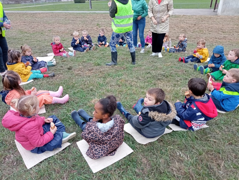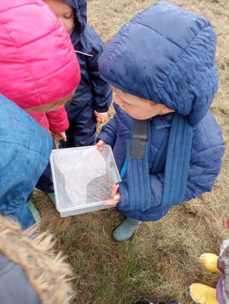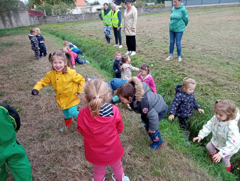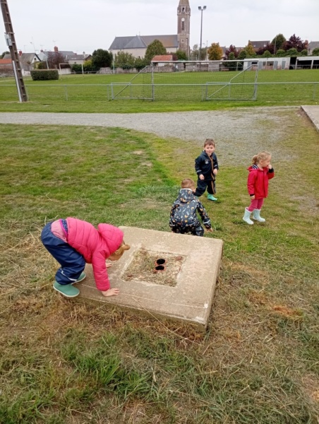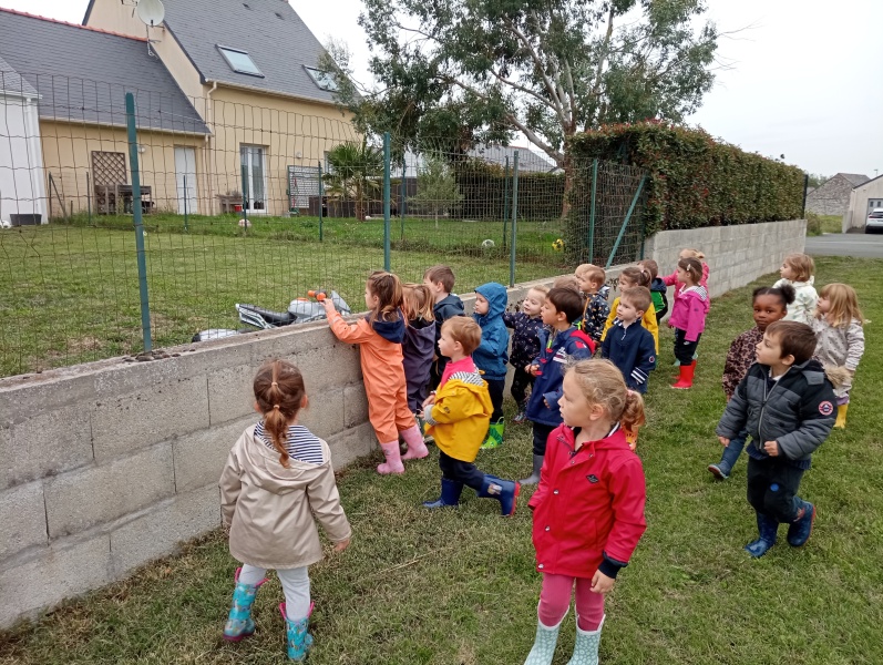Le premier vendredi d’octobre, nous sommes arrivés en pantalon ou combinaison de pluie, vieux pantalon, bottes et manteau imperméable… pour aller découvrir notre « classe dehors », accompagnés de mamans et mamies, sans qui nous ne serions pas sortis ! MERCI.