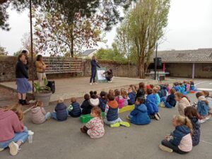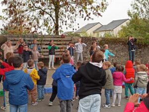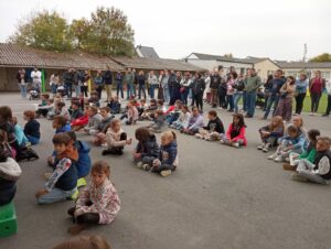 A la fin de ce temps de rassemblement, les élèves de l’école ont offert aux familles la nouvelle « flashmob » sur la chanson crée par Valentin Hardy, un papa d’élèves. Les paroles sont en lien avec notre nouveau projet d’école « citoyens en herbe »