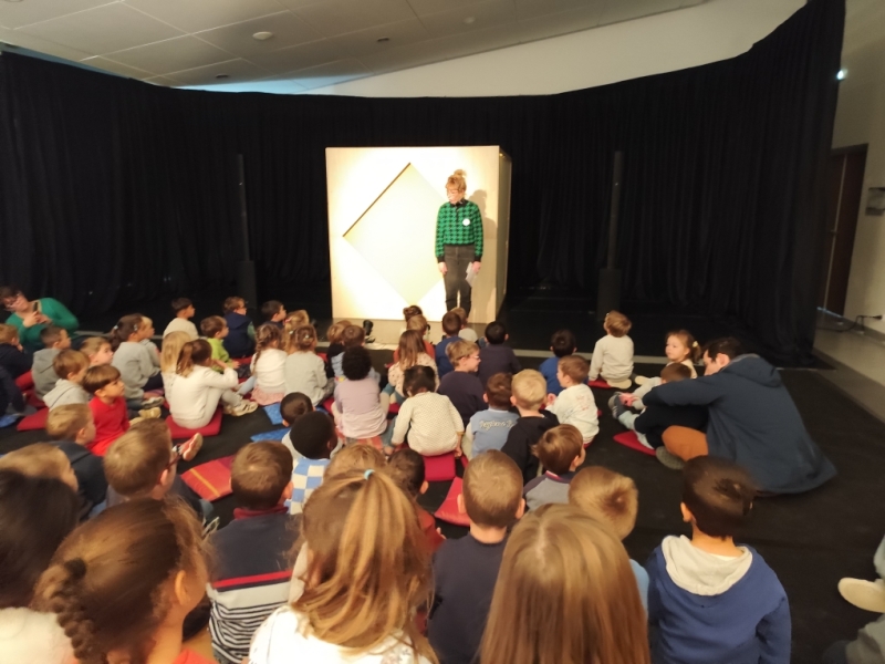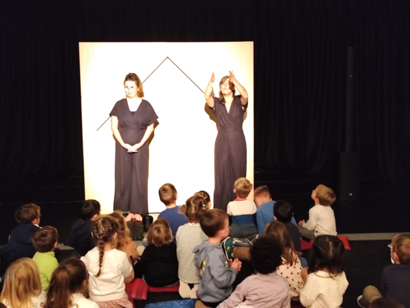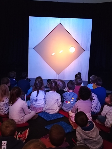 Vendredi 17 octobre, les élèves de Moyenne et Grande Section des classes de maternelles sont allés à Montrelais voir le spectacle « Karl » de la compagnie Betty Boibrut’ (Festival Ce soir, je sors mes parents). Il s’agit d’un spectacle réalisé avec des pièces de tangram qui sont animées sur une toile.