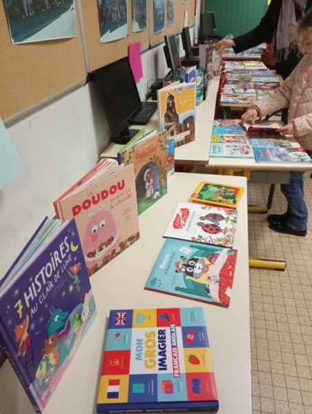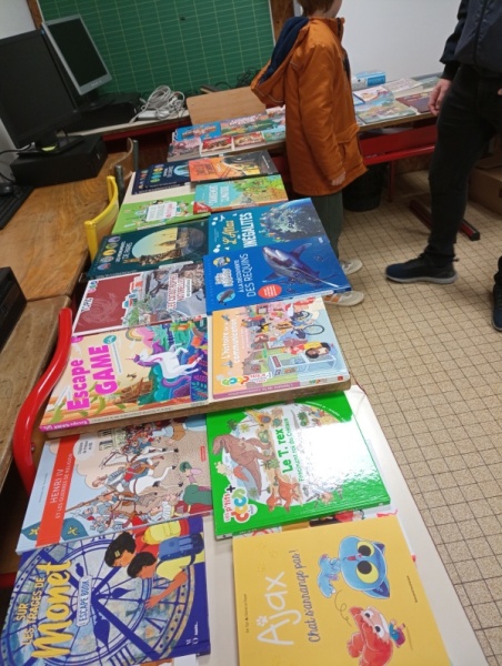 Ce jour là, les portes de l’Ordilivre de l’école étaient ouvertes aux parents pour une exposition vente de tous les livres proposés dans chaque classe.
