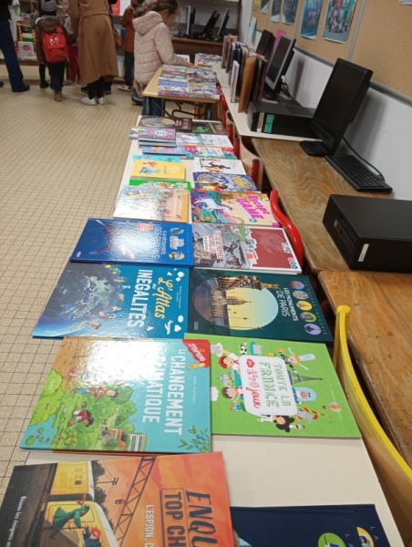 Ce jour là, les portes de l’Ordilivre de l’école étaient ouvertes aux parents pour une exposition vente de tous les livres proposés dans chaque classe.
