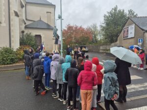 Le 10 novembre, nous nous sommes donc rendus devant le monument aux morts d’Anetz. Nous avons été accueillis par Madame le Maire qui nous a lu le discours de la Ministre des Armées. Ce message officiel a permis aux élèves de mieux comprendre le sens de cette journée nationale et de mesurer l’importance de cette cérémonie encore aujourd’hui.