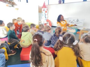 Ensuite, Jeannia nous a lu « La chasse à l’ours » de Michael ROSEN en y associant un morceau de musique.
