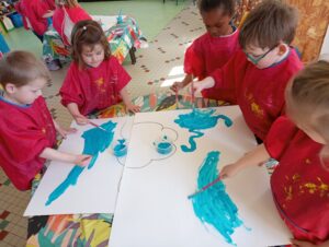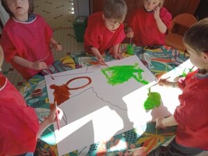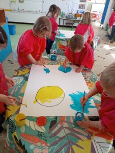 En début de semaine, nous avons peint une partie de la Fresque pour le décor de la Kermesse…
