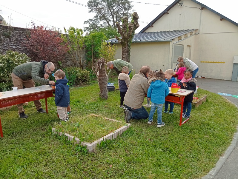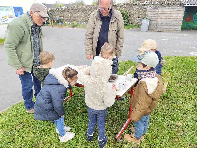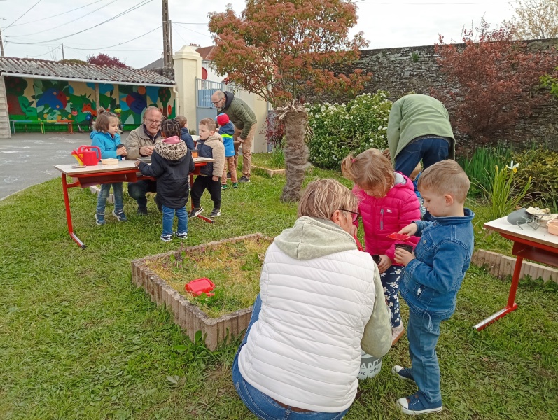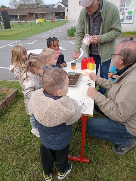 MARDI, les bénévoles de l’association VAIR ENVIRONNEMENT se sont déplacés à 5 pour nous aider à réaliser des semis pour nos potagers: carottes, radis, persil, haricots verts… ou fleurs, nous n’avons plus qu’à attendre que tout cela sorte de terre ! Nous les remercions pour leur intervention.