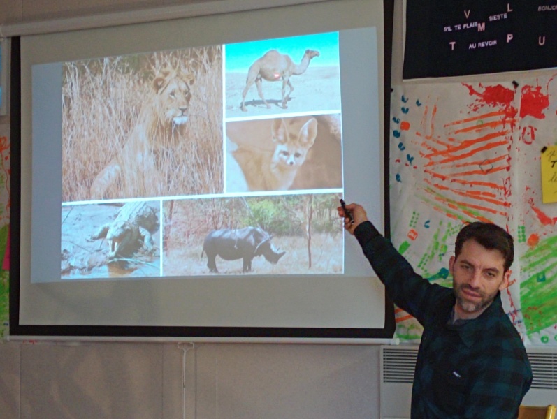 « Il a montré des photos du désert et de la savane, un lion… et l’animal qui a un pic sur la queue (le scorpion) »