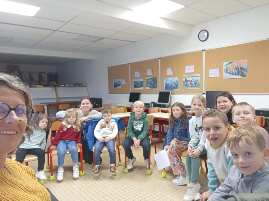 Vendredi 7 novembre, nous avons rassemblé les 10 délégués de l’école pour faire notre 1er conseil. Lola, notre jeune Volontaire service civique était présente avec Mme Robert.  PS-MS : Louna…